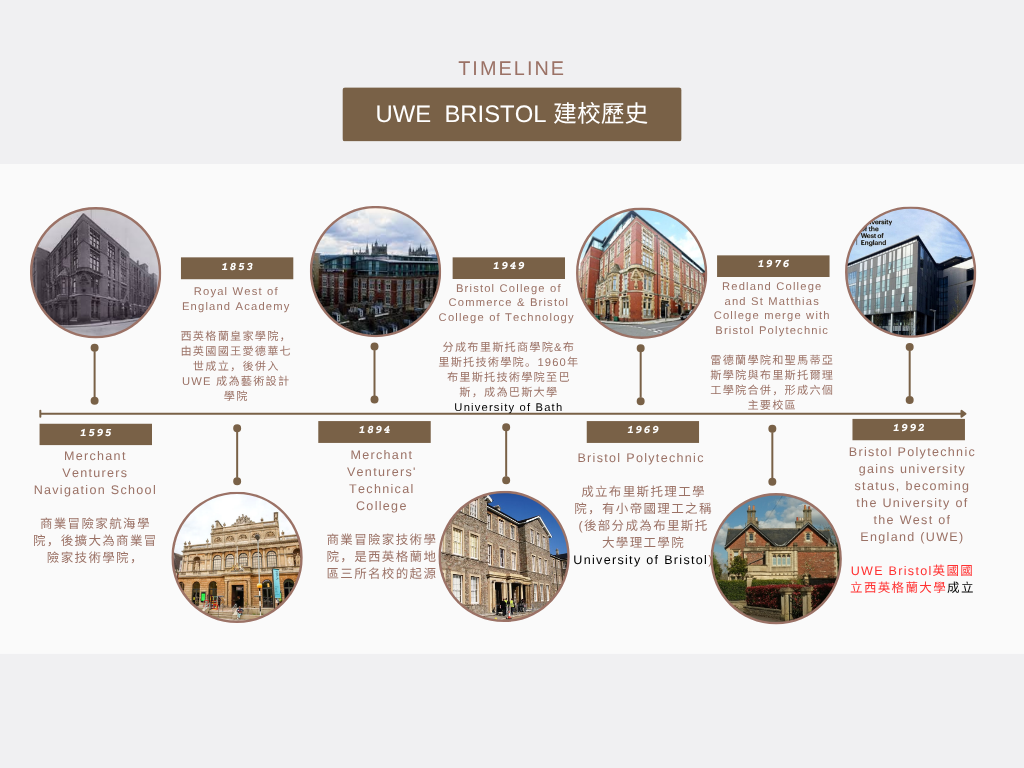 國立西英格蘭大學(University of the West of England)創立於1595年,於1992年升格為西英格蘭大學。西英格蘭大學目前有4個主要校區 Frenchay(主校區)、City、Gloucester及Glenside,擁有9個學院、600多個學位課程。是布里斯托 Bristol 兩所大學(另外一所是布里斯托大學)中最大的一所。